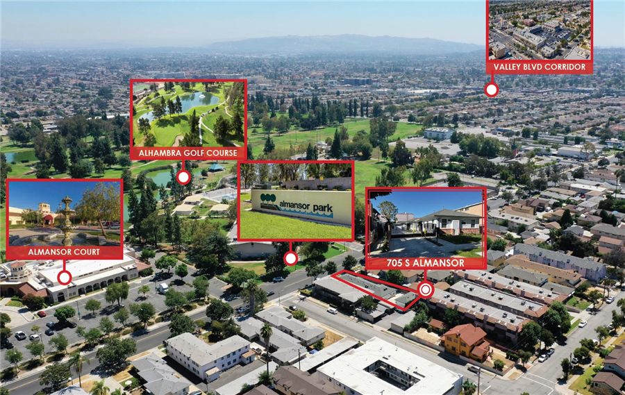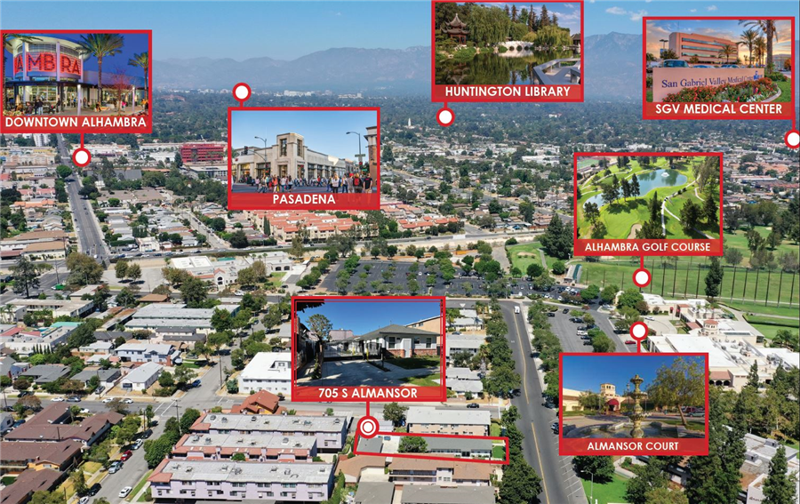 The property is strategically located across from Alhambra Golf Course and Almansor Court with great access to Downtown Alhambra on Garfield & Main which include many restaurants, shopping and entertainment such as: Edwards Alhambra Renaissance 14 & IMAX, Burlington Coat Factory, 38 Degree Ale House & Grill, The Granada LA, and almost all amenities the City of Alhambra has to offer. It is within minutes from Valley Blvd Retail corridor. This area is adjacent to the City of South Pasadena and City of San Marino. It offers great access to multiple freeways (FWY 10, FWY 710, FWY 110, 210 and FWY 134).