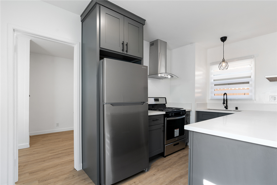 411-417 N Euclid is a single story 10 units apartment. The property was built in 1950 and has been completely renovated with permits in 2022-2023. It consists of 3 single-story buildings and situated on a large ±11,627sf R3 lot. The property has been completely renovated with permits (9 out of 10 units are fully upgraded), and offers an efficient mix of nine 1bedrooms, and one studio unit. Each unit is unique to its vaulted ceiling layout with most units having its private patio. All the upgraded units have undergone a top-to-bottom renovation with full electrical and plumbing upgrades (plumbing upgrade in unit), new high durability wood vinyl and tile flooring in bathroom, new windows throughout, in-unit combo washer/dryer, state of the art mini-split HVAC systems, new kitchen with quartz kitchen countertop and new kitchen cabinets and stainless-steel kitchen appliances (gas range, dishwasher, and refrigerator), and new bathrooms with new vanities, toilets, bathtubs, and name brand fixtures. 411-417 N Euclid units are unique due to its high ceiling and many charming characters such as higher ceiling and large kitchen.