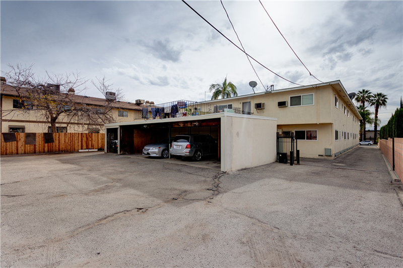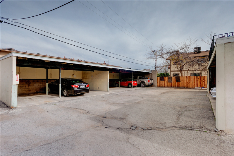 A/C, wall heater, and individual water heater. There are total of 15 parking spaces which are provided by 2 detached carports in the back (12 carport spaces) and 3 open spaces parking in the front of the building. The property’s recent capital improvements are dual pane windows throughout in every unit and recently painted exterior. Several units have been upgraded with new kitchen cabinets, granite kitchen countertops, tiled bathroom, and Pergo laminate flooring.